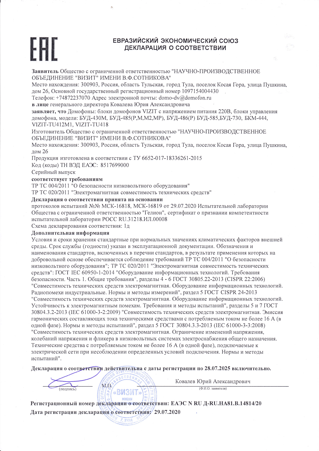 Блок управления БУД-430S Vizit купить в Тюмени в компании ВИПАКС.