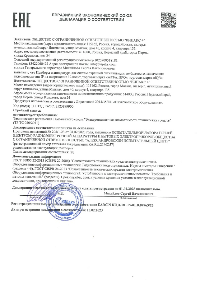 Камера Сокол-DvpF 5Mp Color ON 2,8 АйТек ПРО купить в Тюмени в компании ВИПАКС.