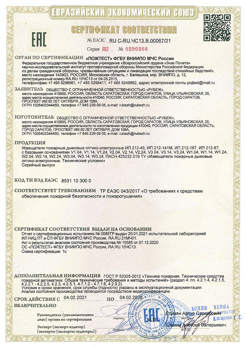 Извещатель пожарный дымовой ДИП-187 (ИП 212-187) W1.04 Рубеж