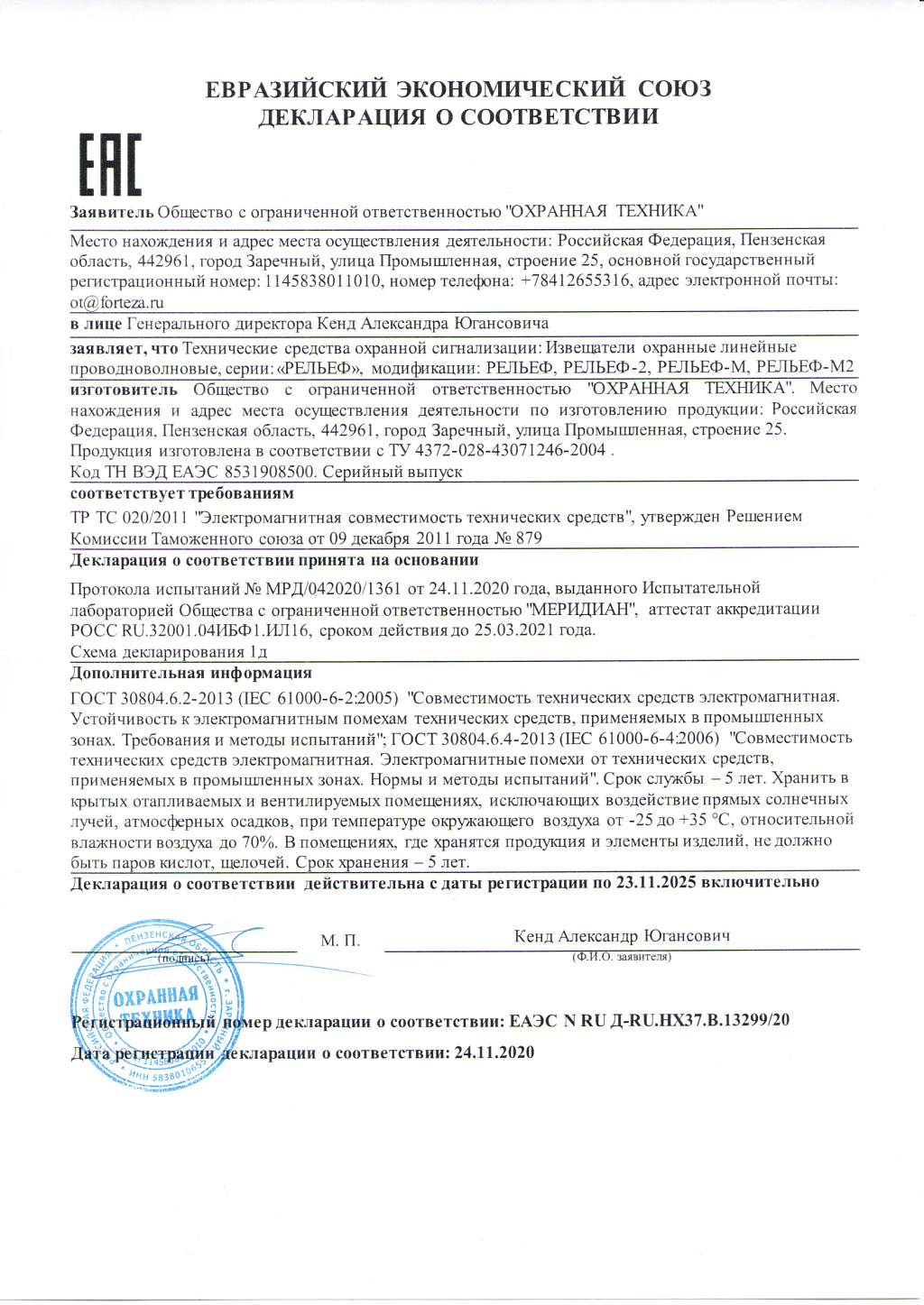 Извещатель охранный линейный двухпроводный РЕЛЬЕФ предназначен для охраны периметров различных объектов и выдачи тревожного извещения при пересечении зоны обнаружения нарушителем.