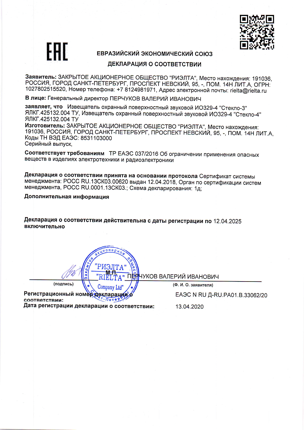 Извещатель Стекло-3 (ИО 329-4) Риэлта