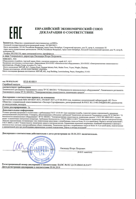 Усилитель ALT-60BT (60 Вт) микшер ALERTO купить в Тюмени в компании ВИПАКС.