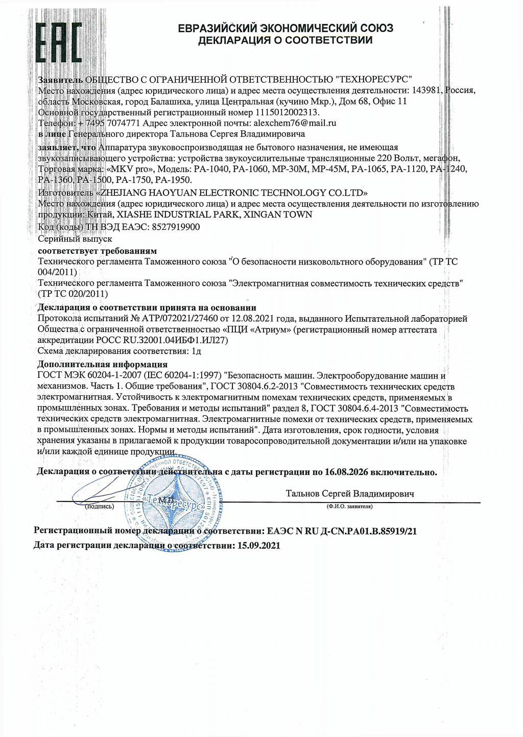 Усилитель PA-1500 MKV-Pro купить в Тюмени в компании ВИПАКС.