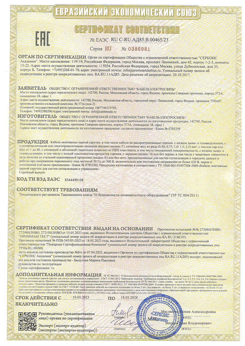 Кабель с медными однопроволочными токопроводящими жилами, с изоляцией из ПВХ-пластиката, в оболочке из малодымного ПВХ-пластиката пониженной горючести. Предназначен для пожарной и охранной сигнализации.