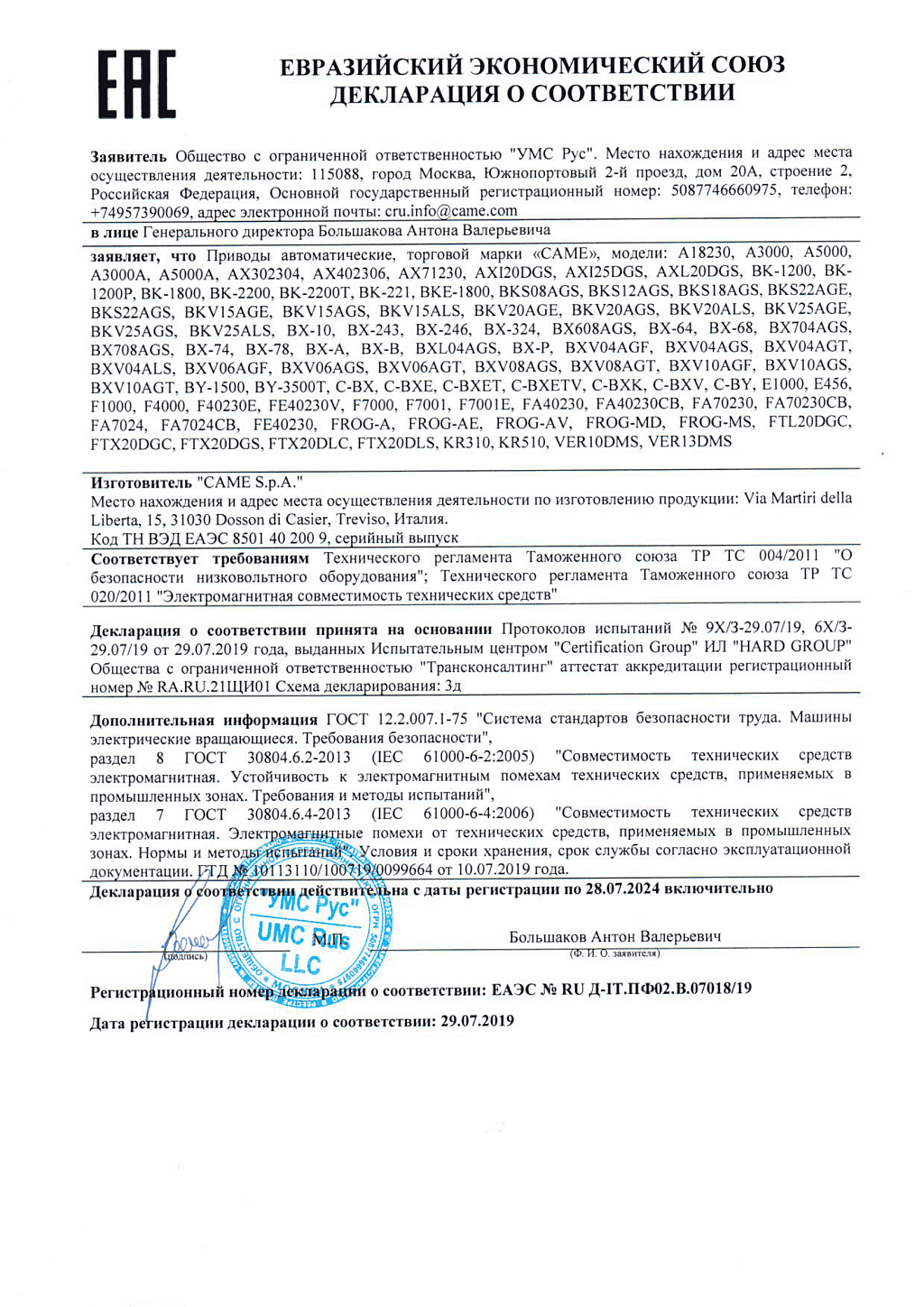 Привод 001A3000A CAME купить в Тюмени в компании ВИПАКС.