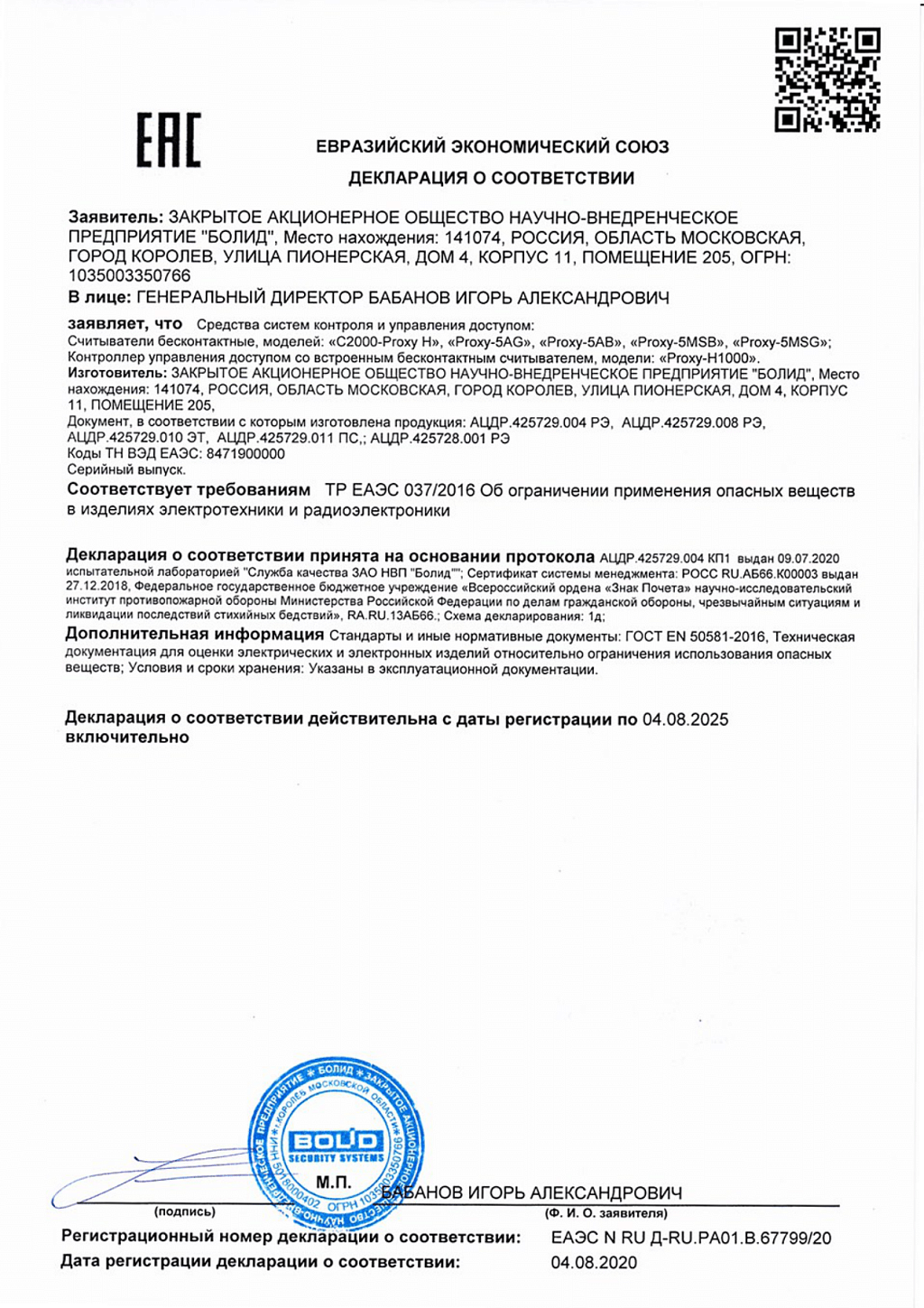 "С2000-Proxy Н" предназначен для считывания кода с идентификационных карточек и передачи его на приборы приемно-контрольные или контроллеры СКУД. В ИСО "Орион" используется для обеспечения процедур управления шлейфами и разделами охранно-пожарной сигнализации и идентификации пользователей в точках доступа СКУД.