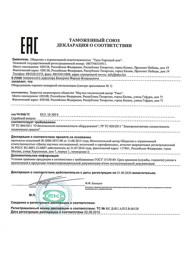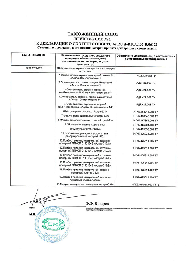 Сертификат соответствия Блок индикации Астра-863 исп.А Теко (лист 8)
